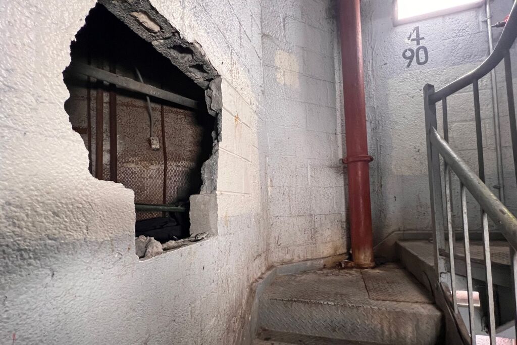 Walking up the building’s stairs, THE CITY observed huge holes in the walls that, according to residents, get filled with trash and eventually plastered over with the trash still inside — only to be knocked open again eventually.